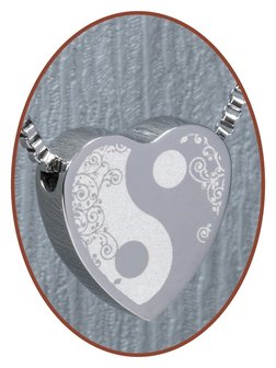 DETAILS: This piece of cremation ash jewelry is engraved with the following image: 'Yin Yang'.