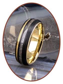 DETAILS: This piece of cremation ash jewelry has a special visible, or if you wish invisible ash processing method, the gold color and black plating and the brushed finish make this an exclusive item.