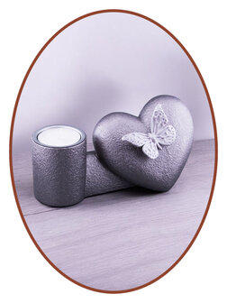 The urn in the main photo is finished in the color "Buckle-up Metallic", the decoration butterfly is finished in the color "Silver Pink Metallic"