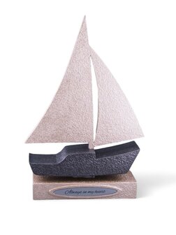 This urn is available in many color combinations (See color options), the ship of the urn in the main photo is finished in the color 'Dark Steel Metallic' the sails are finished in 'Sparkling Metallic Silver' and the base are finished in the color 'Naples Metallic'