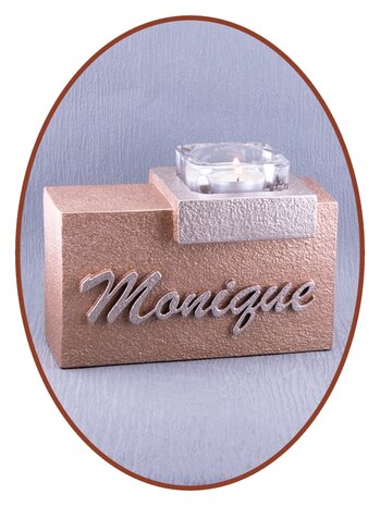This urn is available in many colors (See product photos), the urn in the main photo is finished in the color 'Copper blush metallic' and the top layer of the name and partly the tealight holder is finished with 'Brass Metallic', the urn can also be are finished in one color.